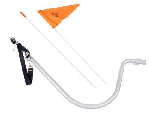 Includes towbar arm, bike hitch and security flag Bright orange DoggyRide safety flag provides brought visibility Angled towbar provides leveled using on your dog